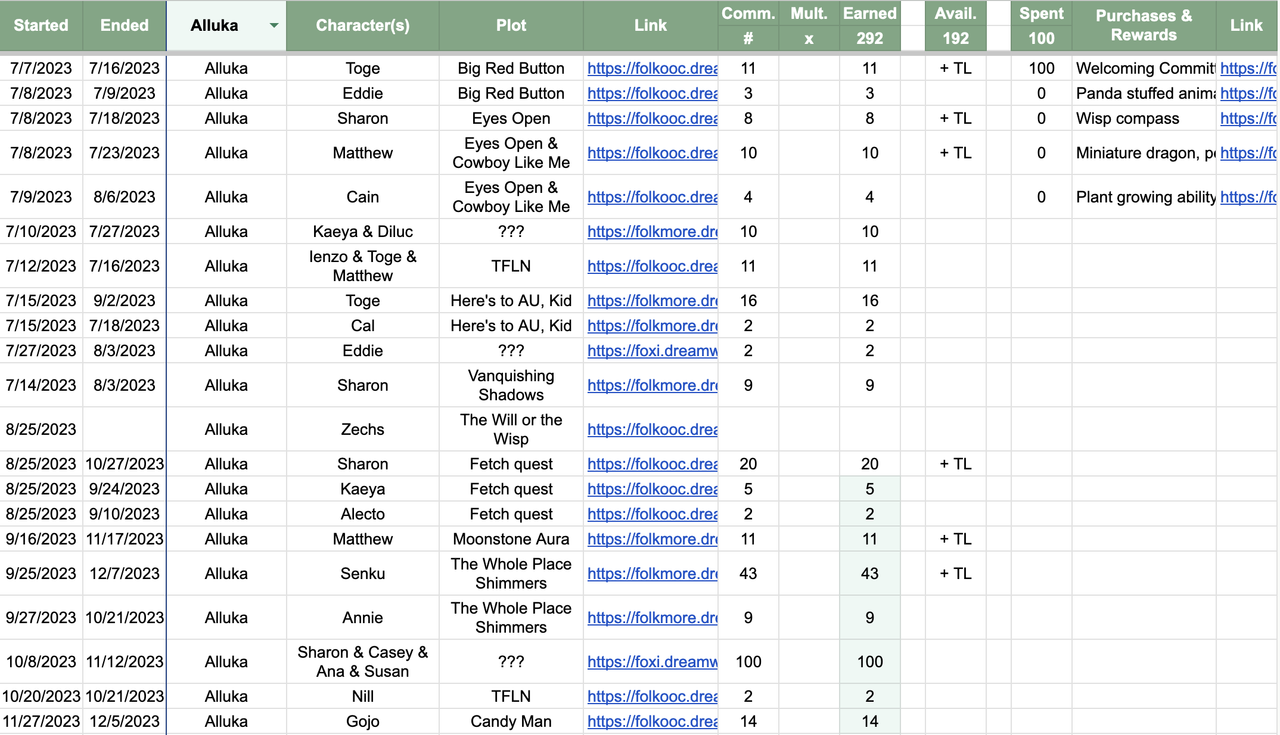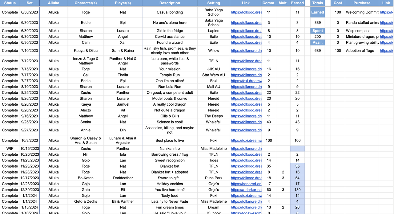 You can use this form to keep general track of your tags per month so that you don't need to hunt down 500 tags when you finally choose to spend them. You can treat it like a "regular AC" page without the pressure of time restraints. For your proofs, please try to remember to link to your character's specific thread rather than the top level you tagged into (unless it's your top level of course!). Thank you!